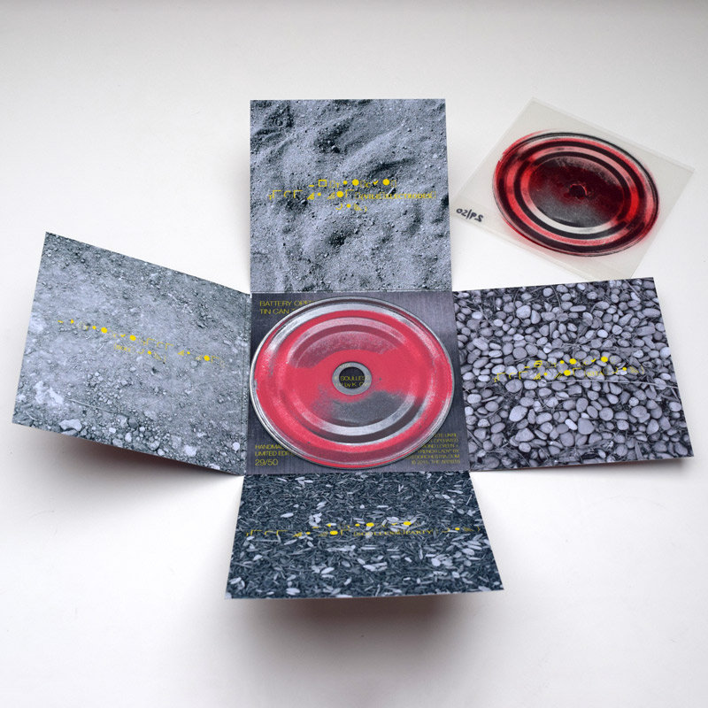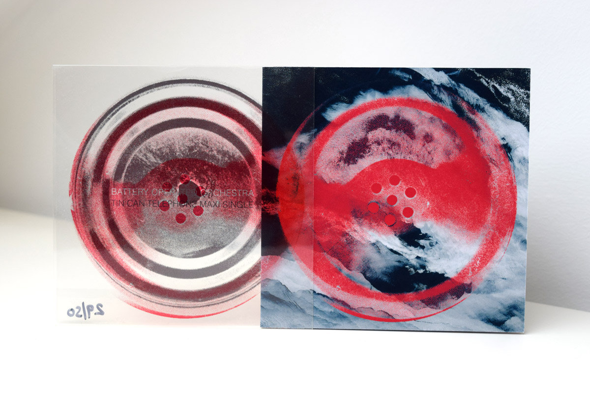 The hand-made numbered limited edition of the Tin Can Telephone Maxi-Single, is a beautiful ten-panel piece of artwork, designed and folded by BOO themselves. Made from delicious matte-finished card stock and enveloped in acetate sleeve art. "Velvety!" Only 50 have been made, and only 50 will ever be made!